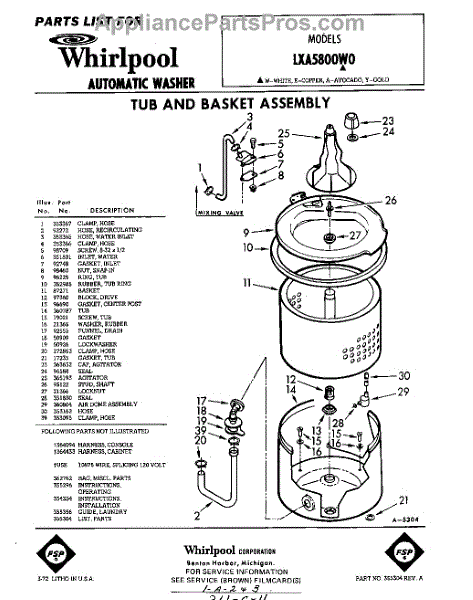 Parts for Whirlpool LXA5805W0: 01 - Section Parts