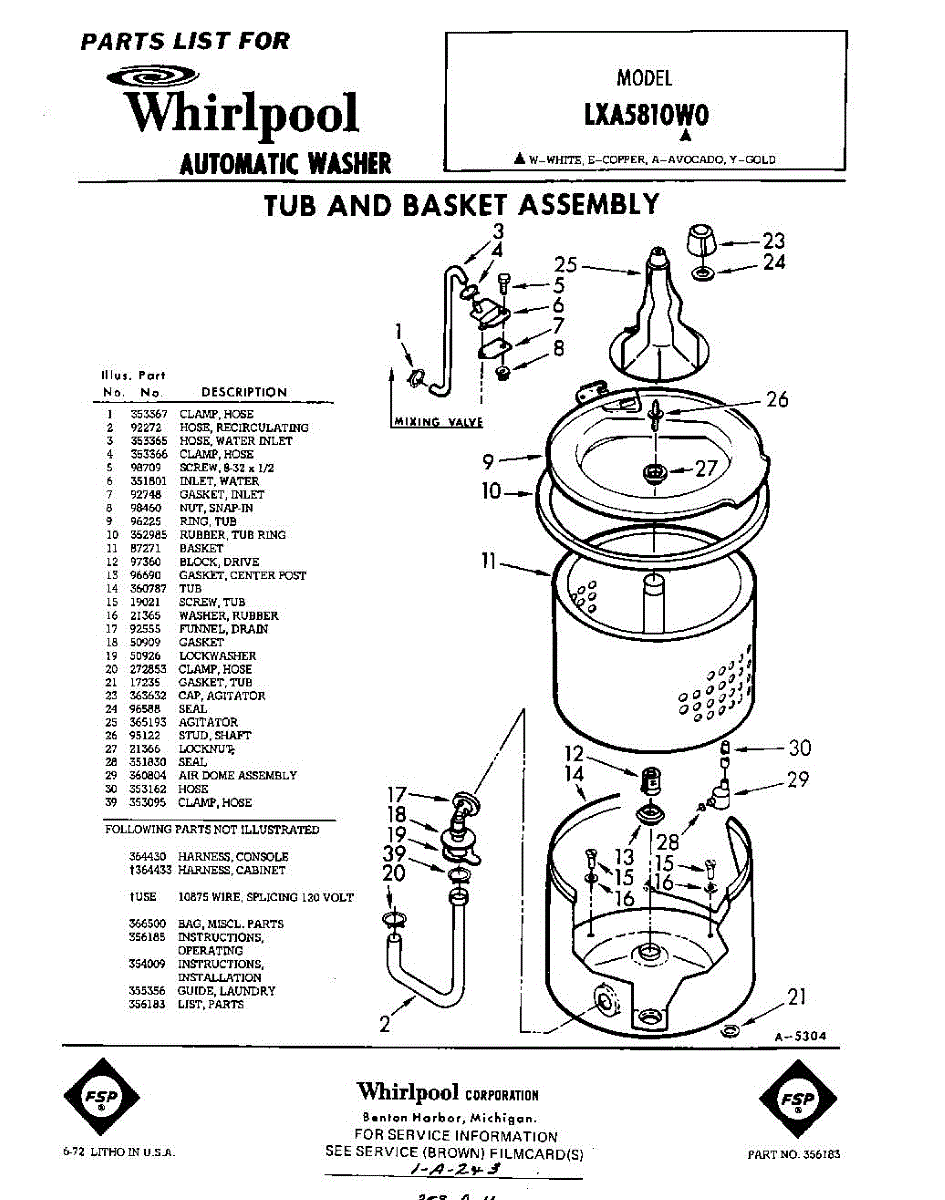 Parts for Whirlpool LXA5810W0: 01 - Section Parts