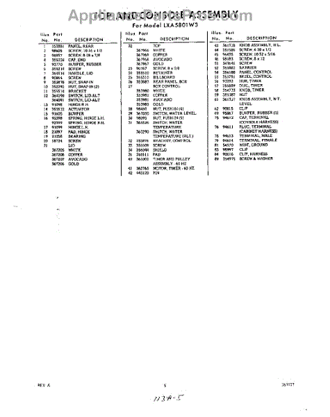 Parts for Whirlpool LXA5810W3: 05 - Section Parts