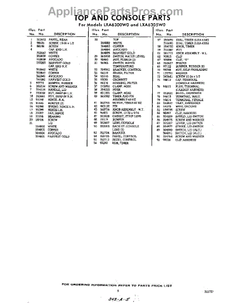 Parts for Whirlpool LXA6300W0: 05 - Section Parts