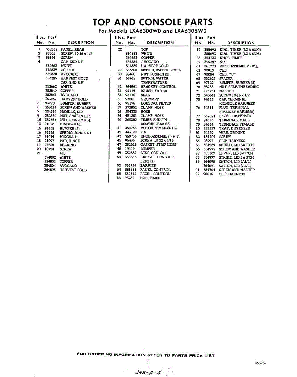 Parts for Whirlpool LXA6305W0: 05 - Section Parts