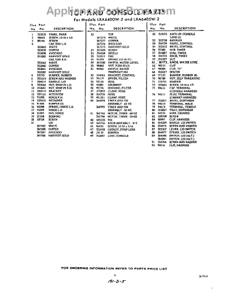 Parts for Whirlpool LXA6400W2: 05 - Section Parts