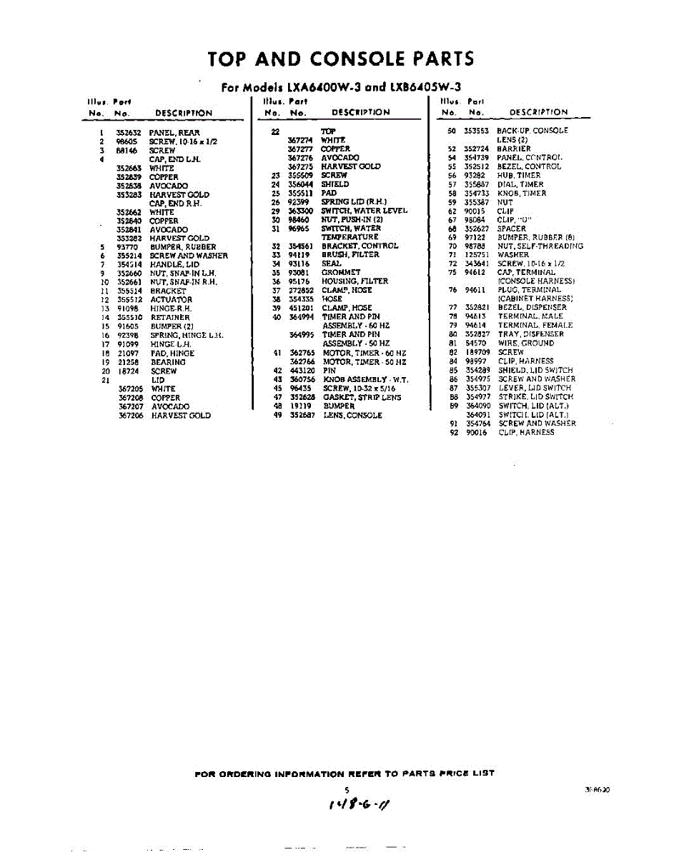 Parts for Whirlpool LXA6400W3: 05 - Section Parts
