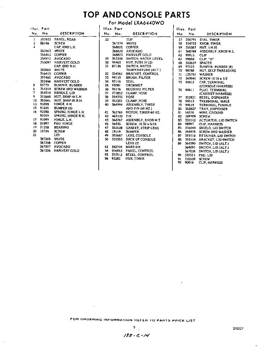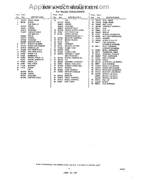 Parts for Whirlpool LXA6440W0: 05 - Section Parts