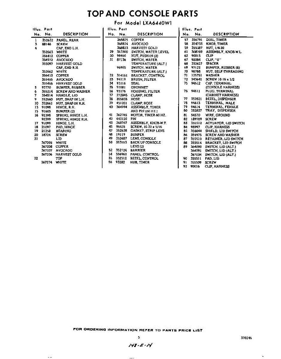 Parts for Whirlpool LXA6440W1: 05 - Section Parts