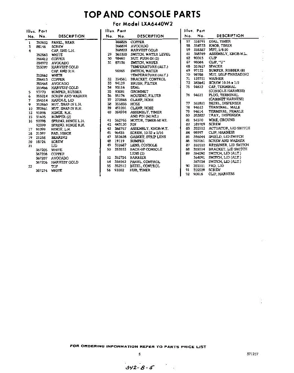 Parts for Whirlpool LXA6440W2: 05 - Section Parts