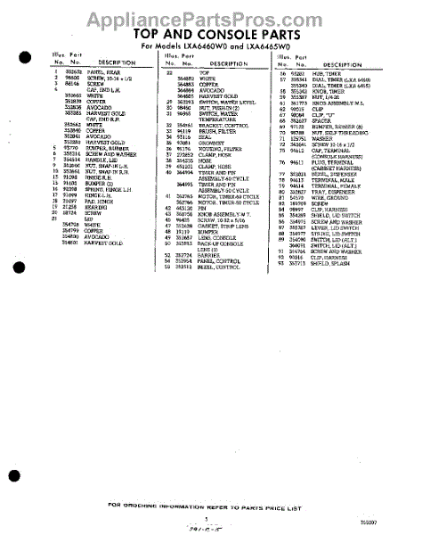 Parts for Whirlpool LXA6460W0: 05 - Section Parts