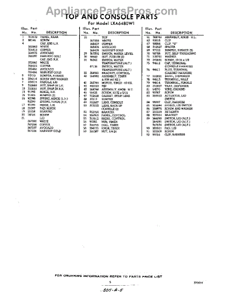 Parts for Whirlpool LXA6480W1: 05 - Section Parts