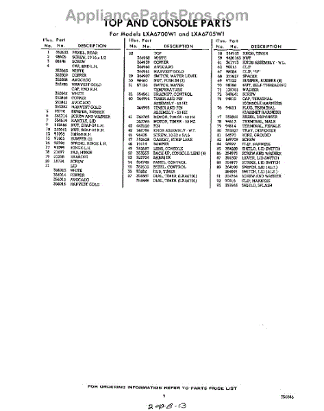 Parts for Whirlpool LXA6700W1: 05 - Section Parts