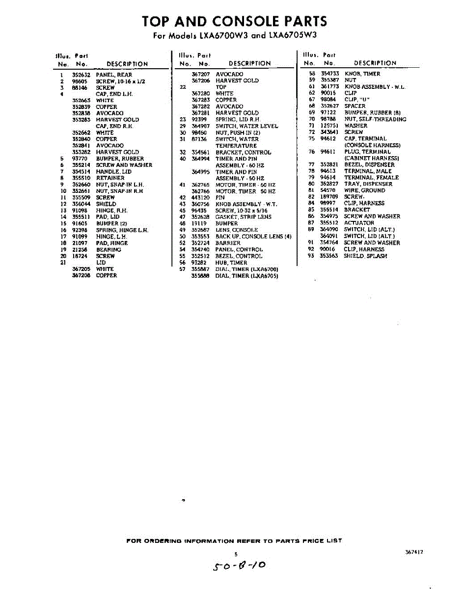 Parts for Whirlpool LXA6700W3: 05 - Section Parts