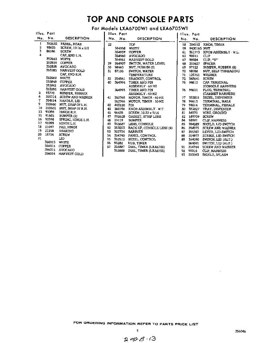 Parts for Whirlpool LXA6705W1: 05 - Section Parts