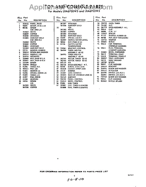 Parts for Whirlpool LXA6705W3: 05 - Section Parts