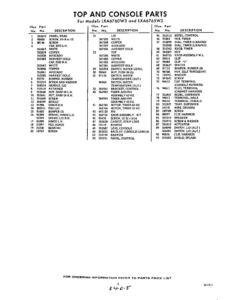 Parts for Whirlpool LXA6760W3: 05 - Section Parts