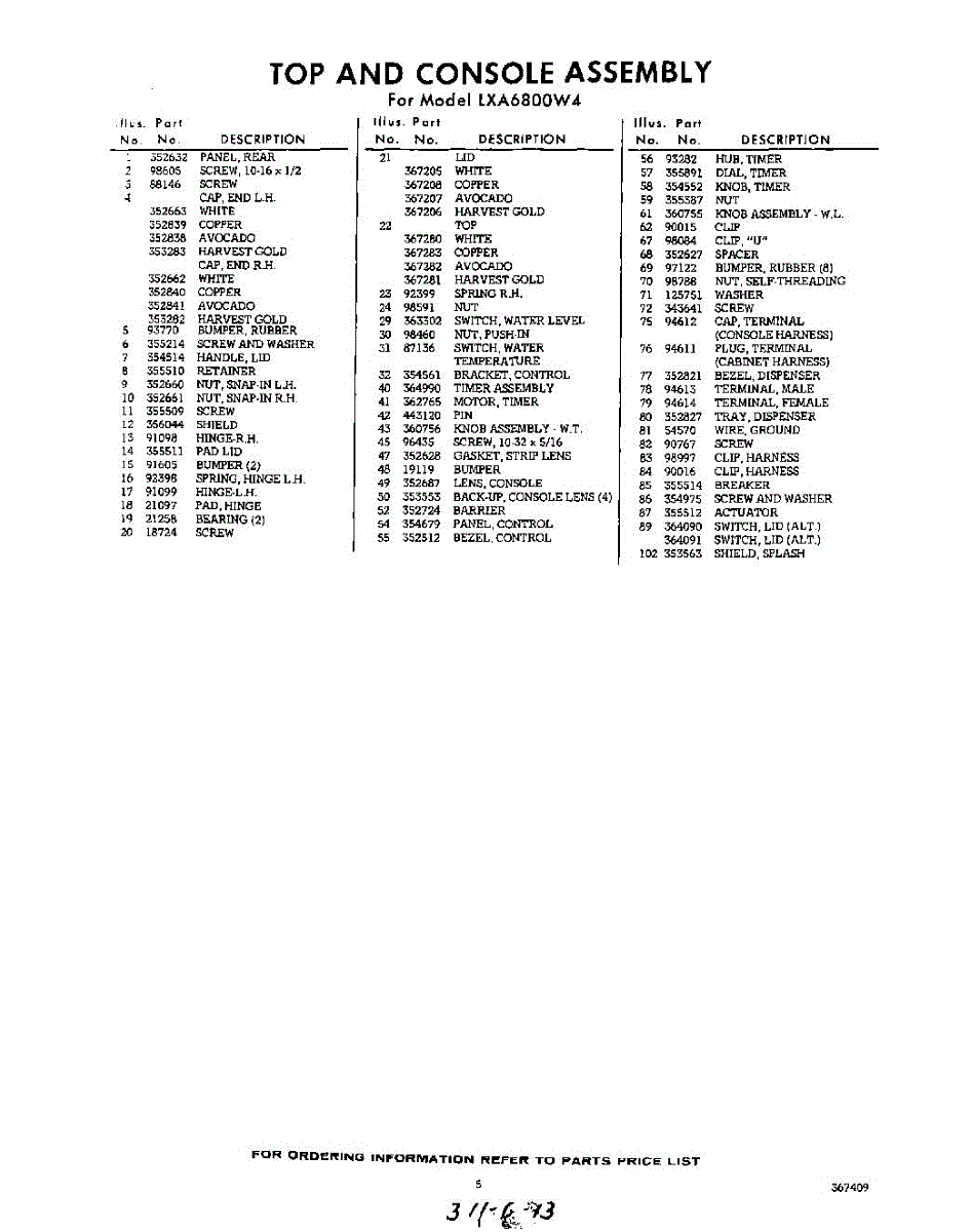 Parts for Whirlpool LXA6800W4: 05 - Section Parts