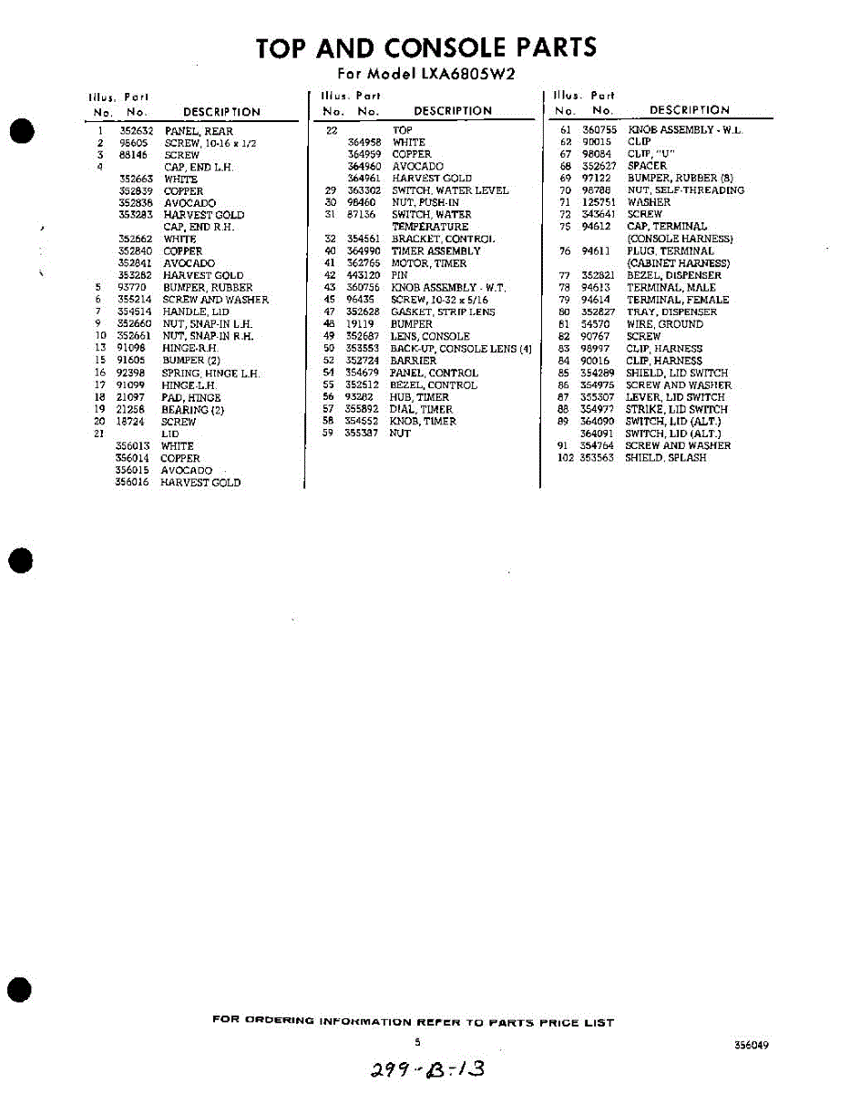 Parts for Whirlpool LXA6805W2: 05 - Section Parts