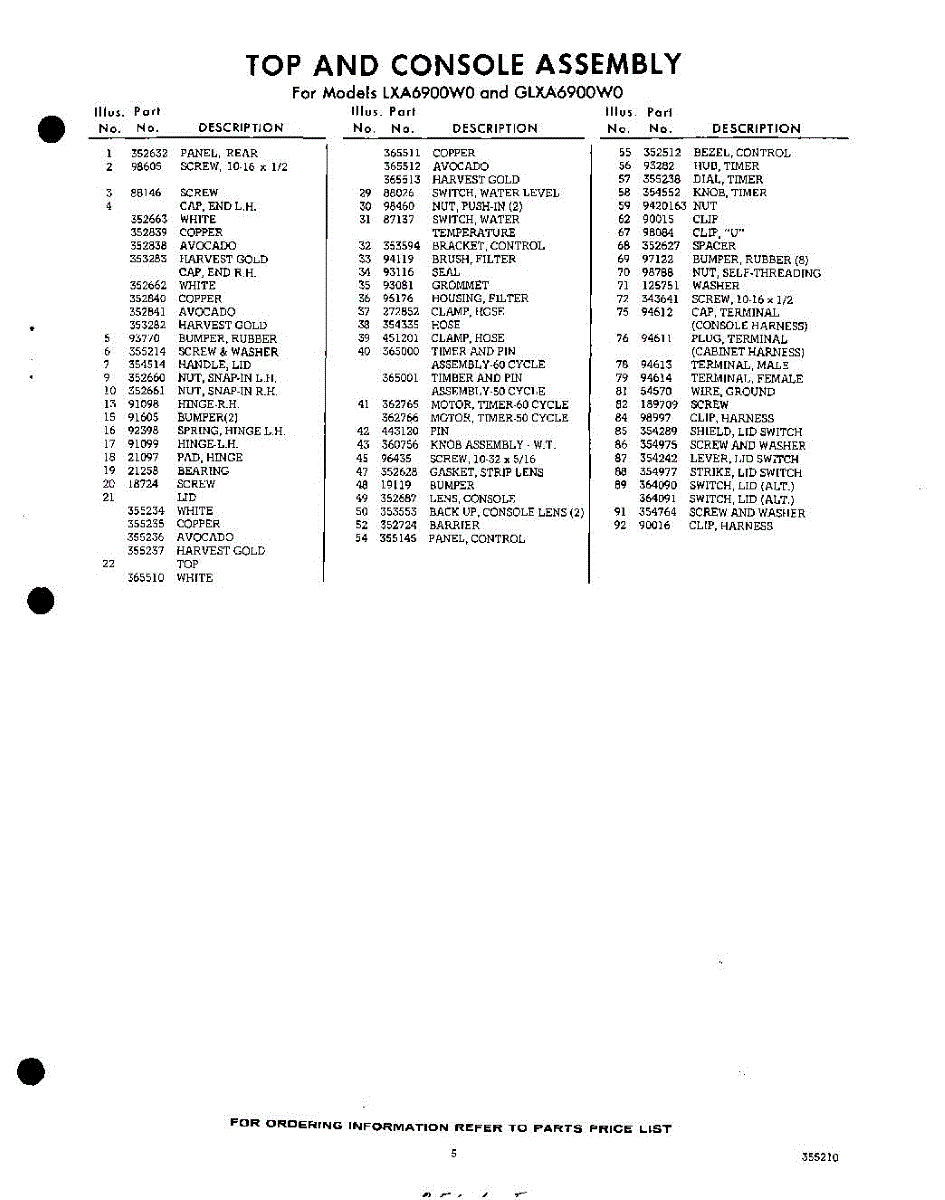 Parts for Whirlpool LXA6900W0: 05 - Section Parts