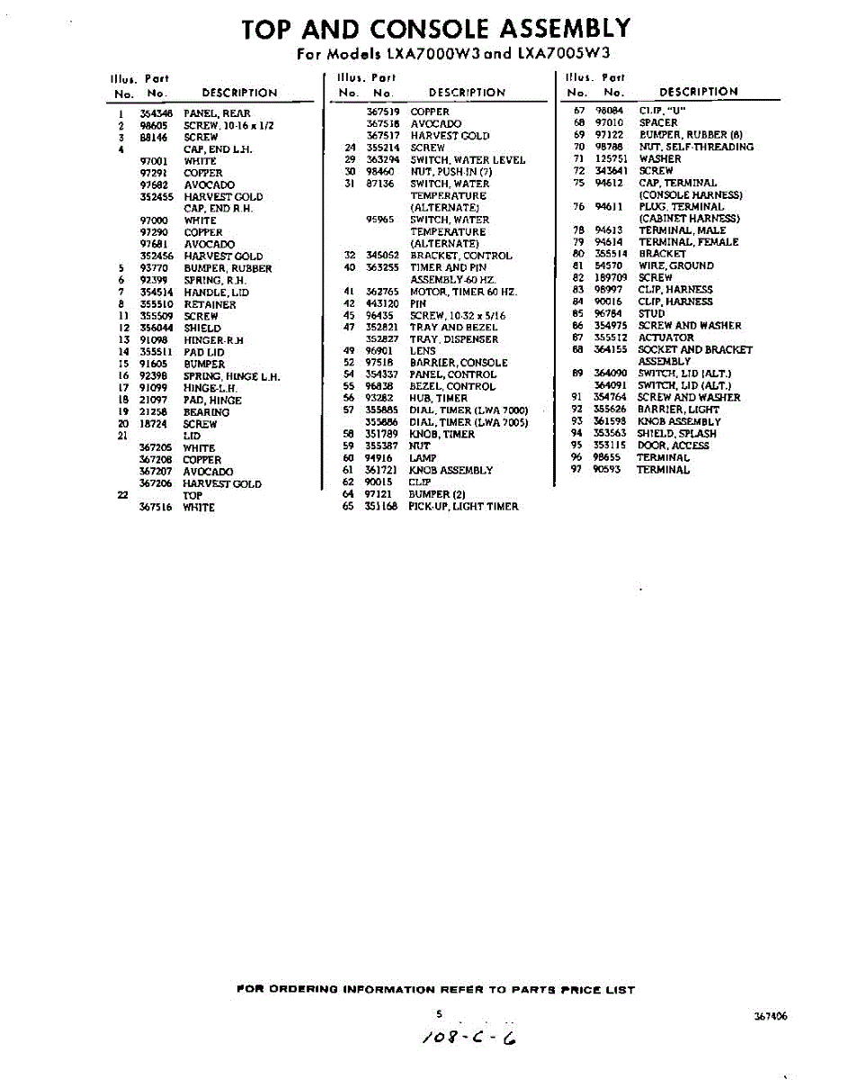 Parts for Whirlpool LXA7000W3: 05 - Section Parts