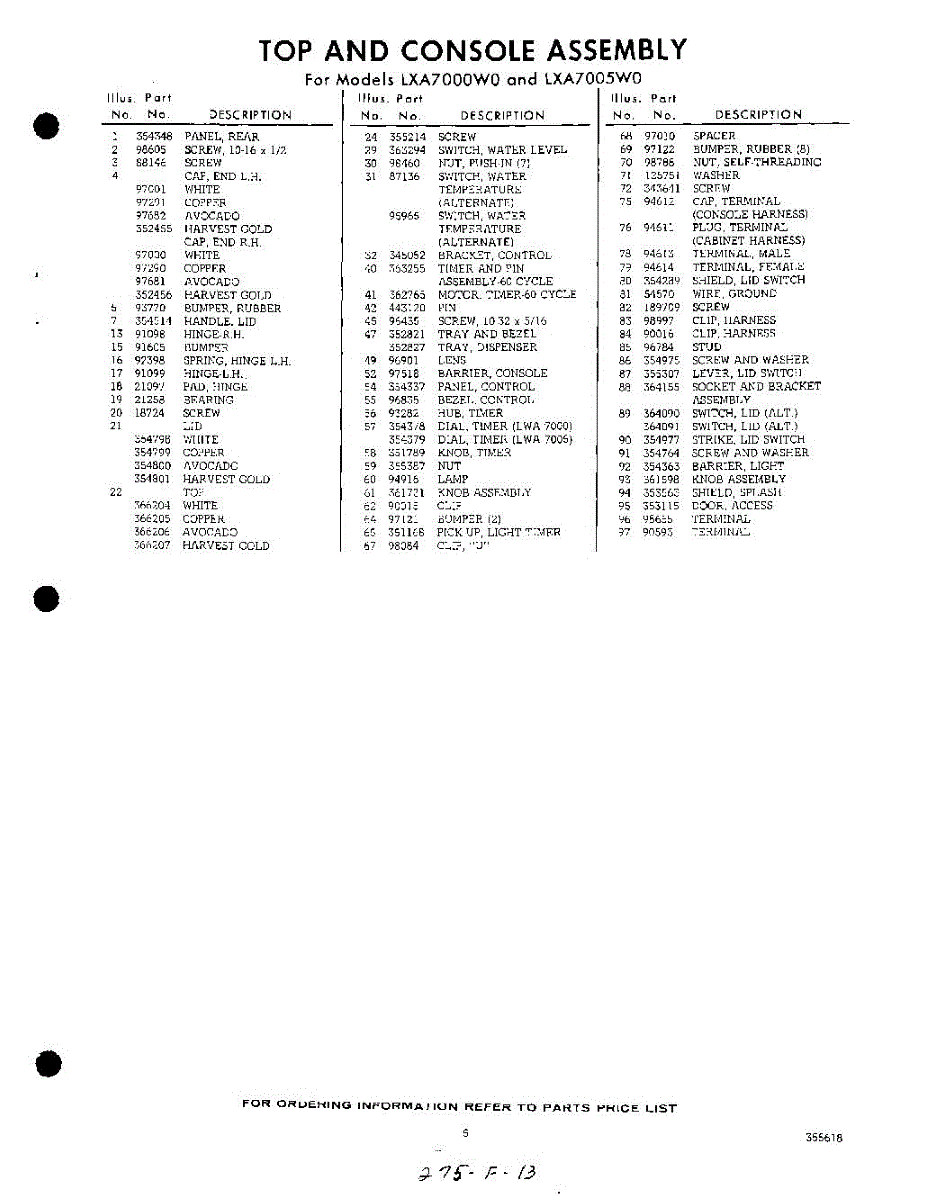 Parts for Whirlpool LXA7005W0: 05 - Section Parts