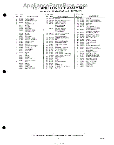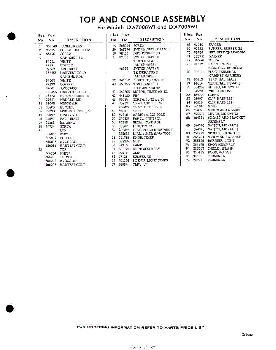 Parts for Whirlpool LXA7005W1: 05 - Section Parts