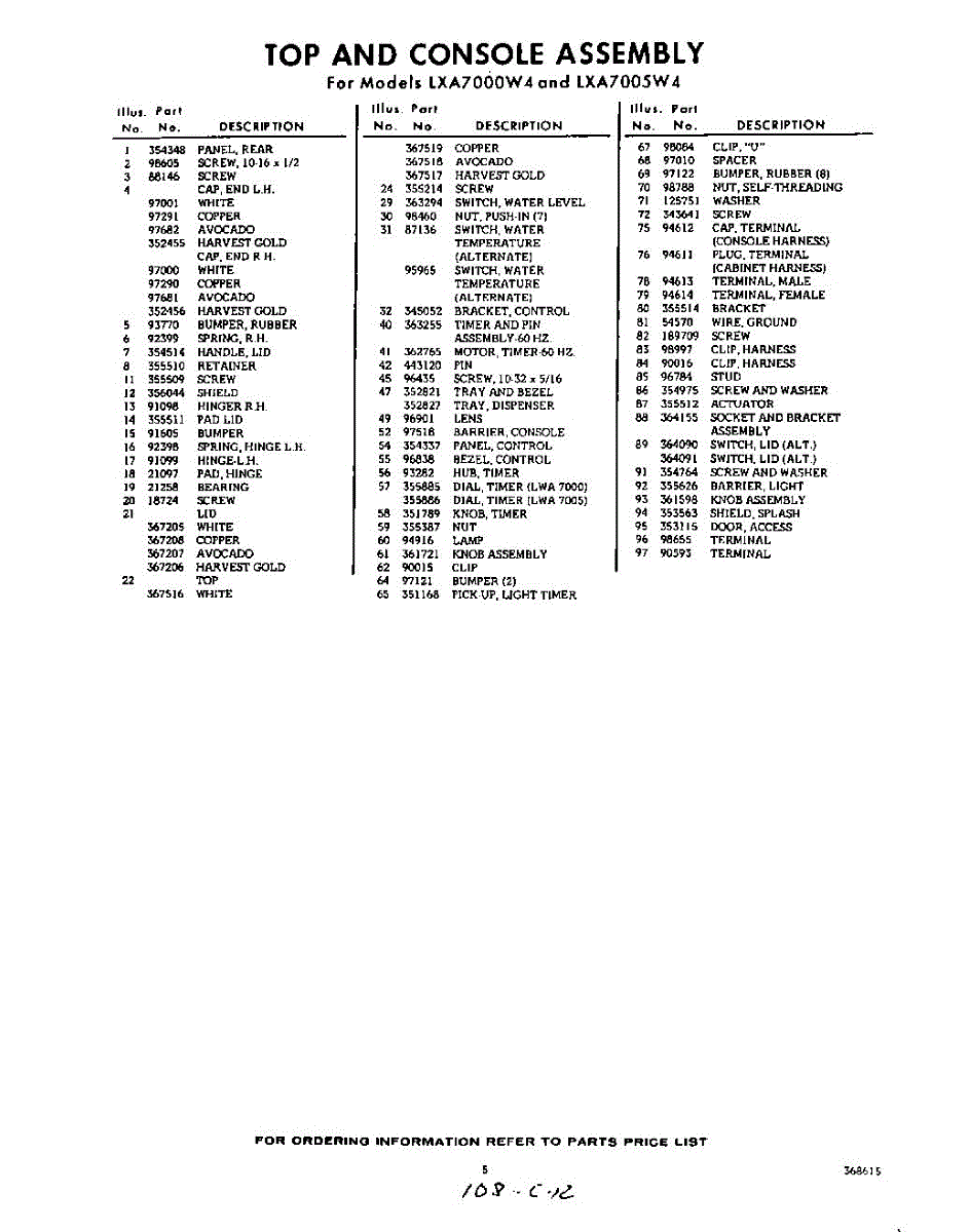 Parts for Whirlpool LXA7005W4: 05 - Section Parts