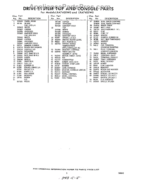 Parts for Whirlpool LXA7400W0: 05 - Section Parts