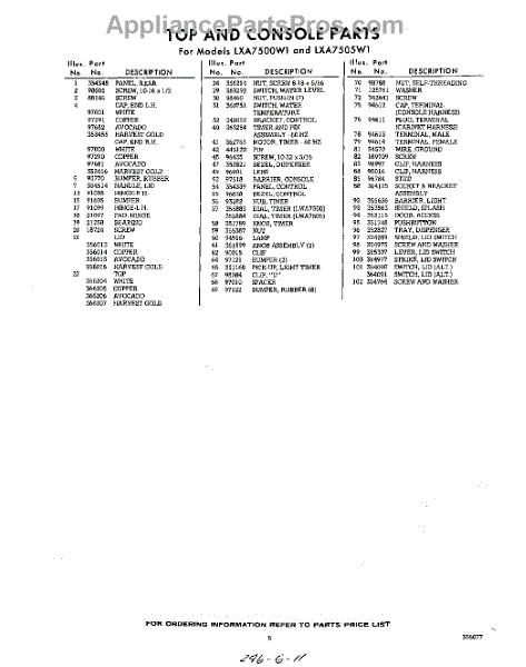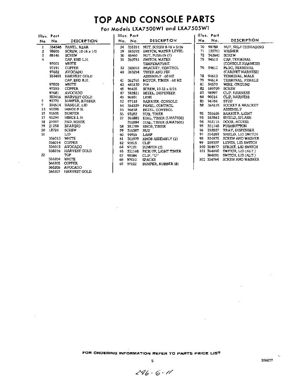 Parts for Whirlpool LXA7500W1: 05 - Section Parts