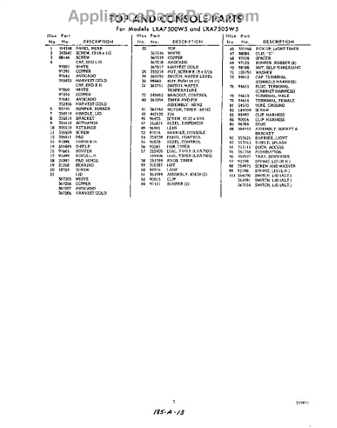 Parts for Whirlpool LXA7505W5: 05 - Section Parts