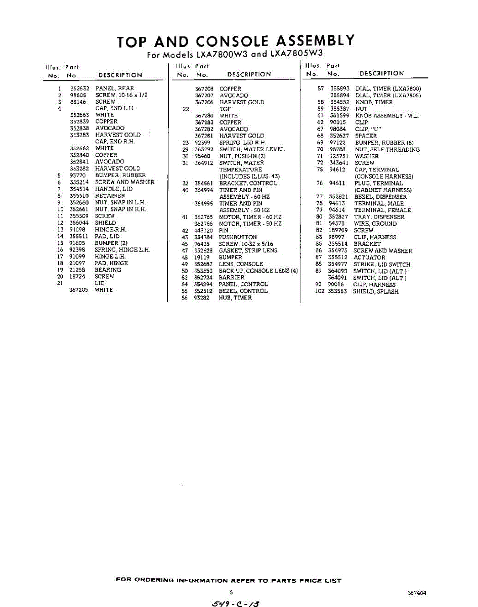 Parts for Whirlpool LXA7800W3: 05 - Section Parts