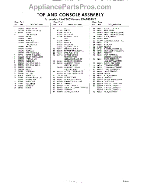 Parts for Whirlpool LXA7800W6: 05 - Section Parts
