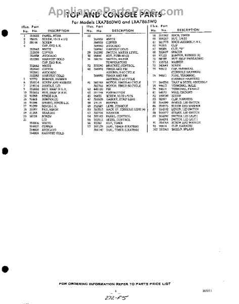 Parts for Whirlpool LXA7865W0: 05 - Section Parts