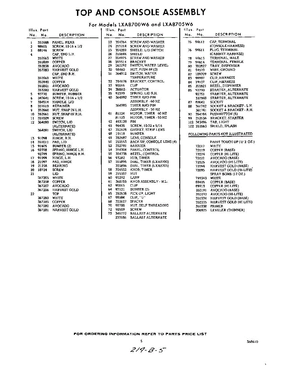 Parts for Whirlpool LXA8700W6: 05 - Section Parts