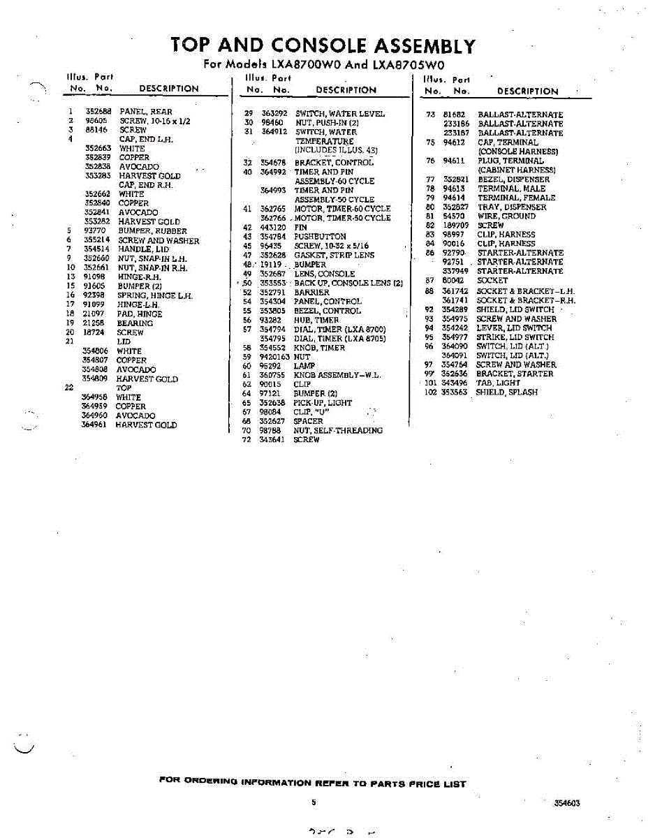 Parts for Whirlpool LXA8705W0: 05 - Section Parts