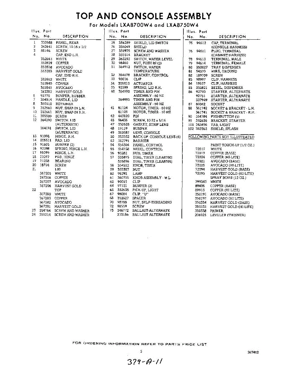 Parts for Whirlpool LXA8705W4: 05 - Section Parts
