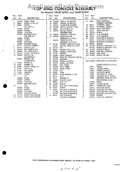 Parts for Whirlpool LXA8745W0: 05 - Section Parts