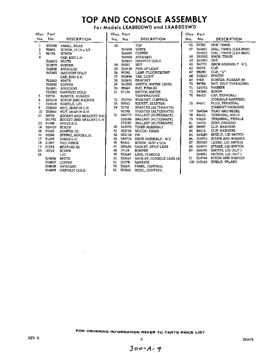 Parts for Whirlpool LXA8805W0: 05 - Section Parts