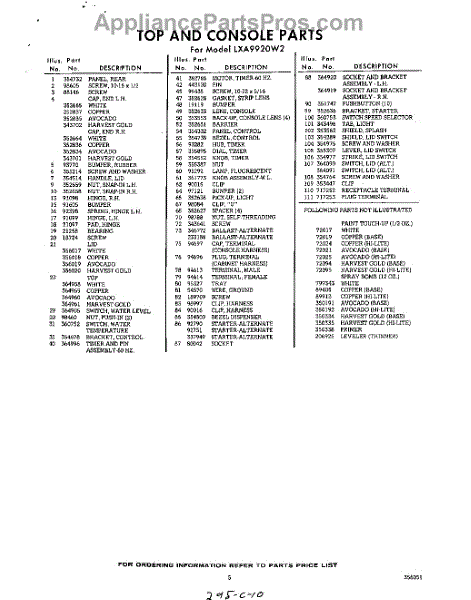 Parts for Whirlpool LXA9920W2: 05 - Section Parts