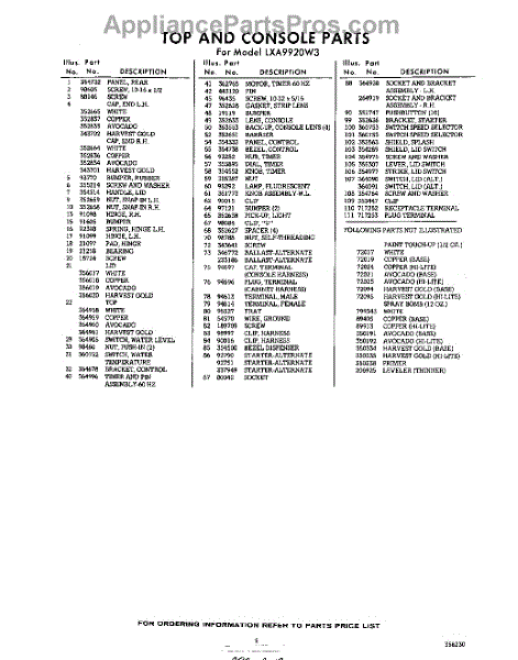 Parts for Whirlpool LXA9920W3: 05 - Section Parts