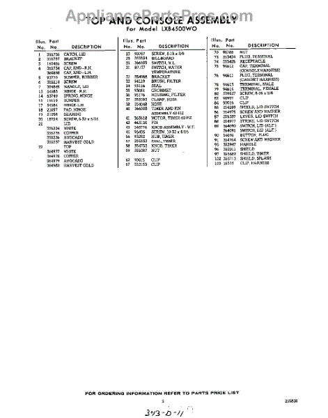 Parts for Whirlpool LXB4500W0: 05 - Section Parts