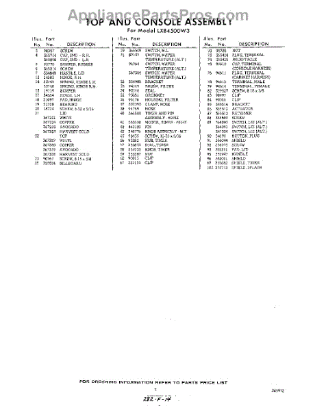 Parts for Whirlpool LXB4500W3: 05 - Section Parts