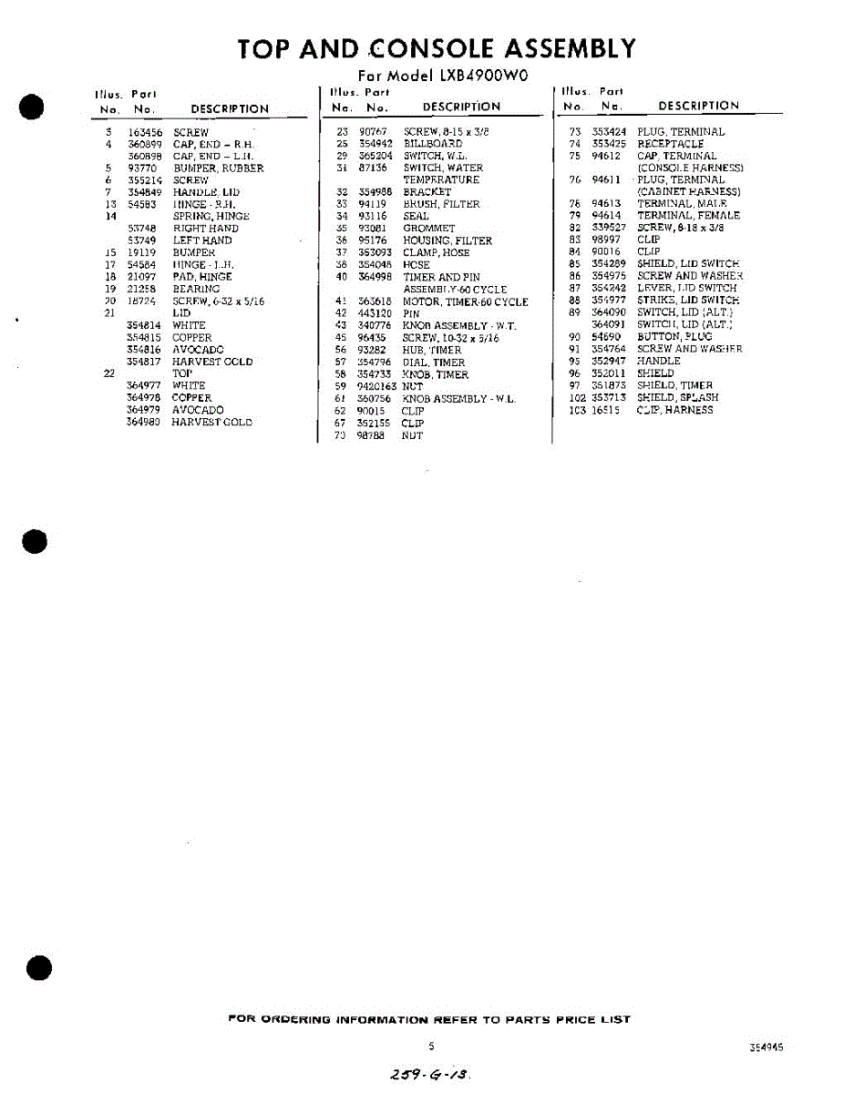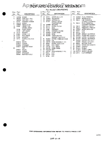 Parts for Whirlpool LXB4900W0: 05 - Section Parts