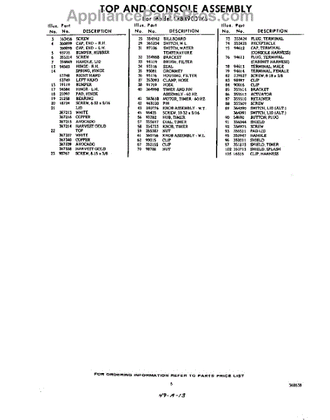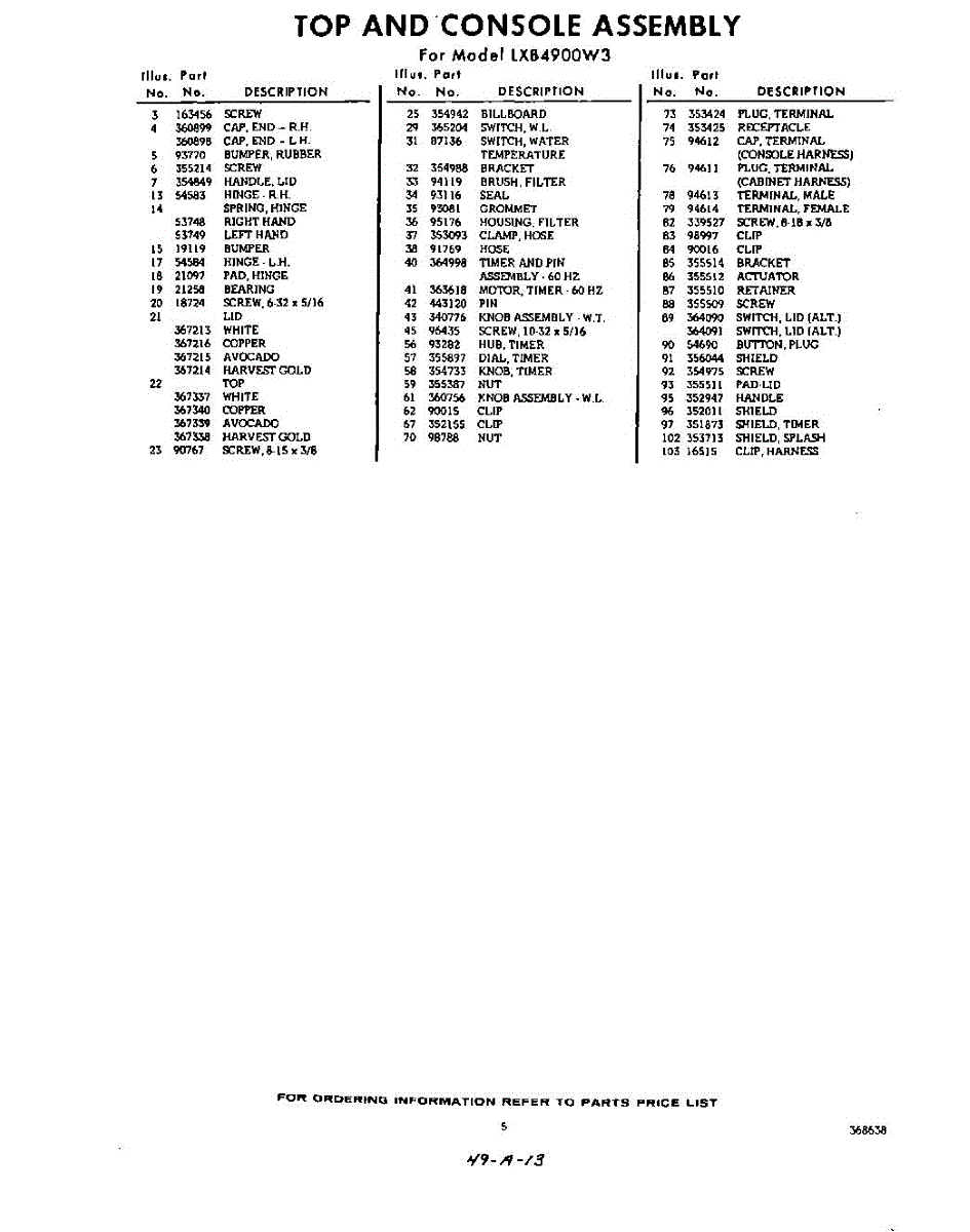 Parts for Whirlpool LXB4900W3: 05 - Section Parts