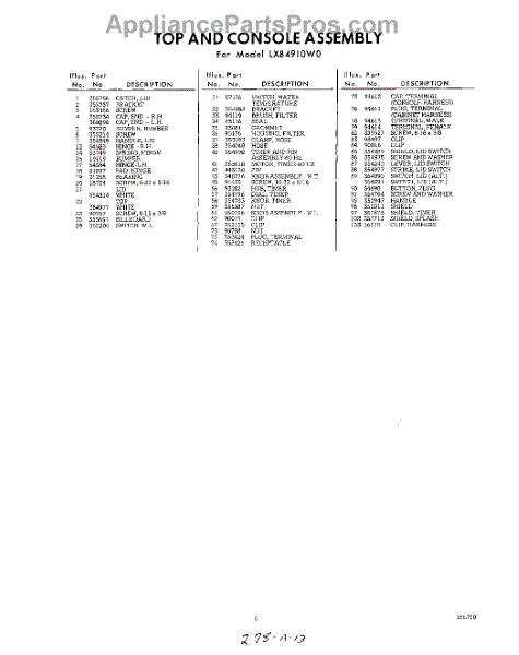 Parts for Whirlpool LXB4910W0: 05 - Section Parts
