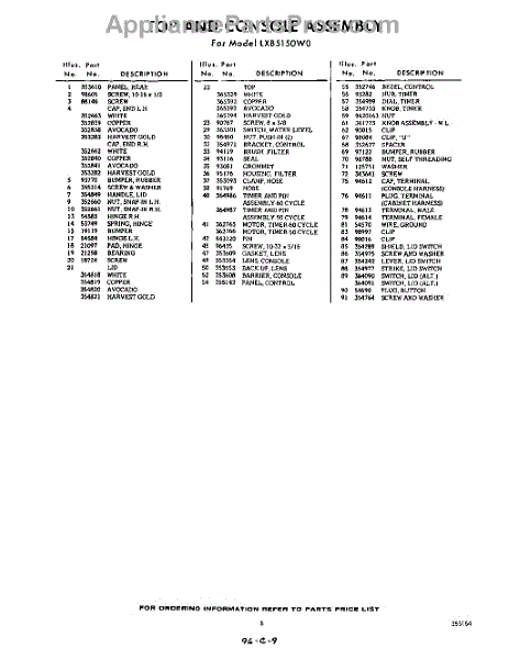 Parts for Whirlpool LXB5150W0: 05 - Section Parts