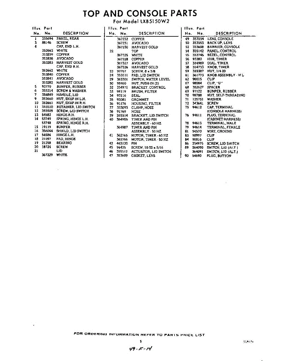 Parts for Whirlpool LXB5150W2: 05 - Section Parts