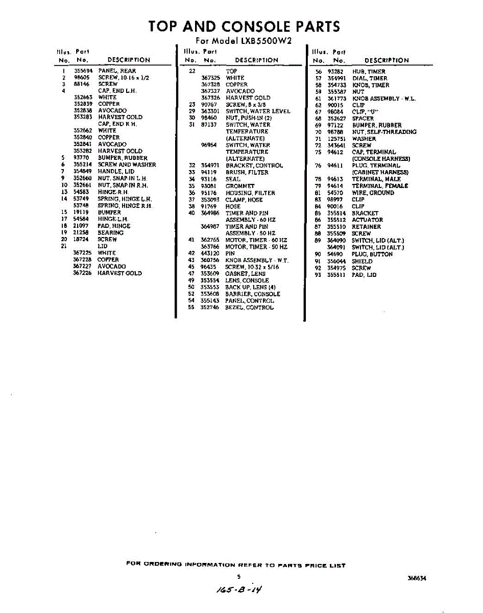 Parts for Whirlpool LXB5500W2: 05 - Section Parts