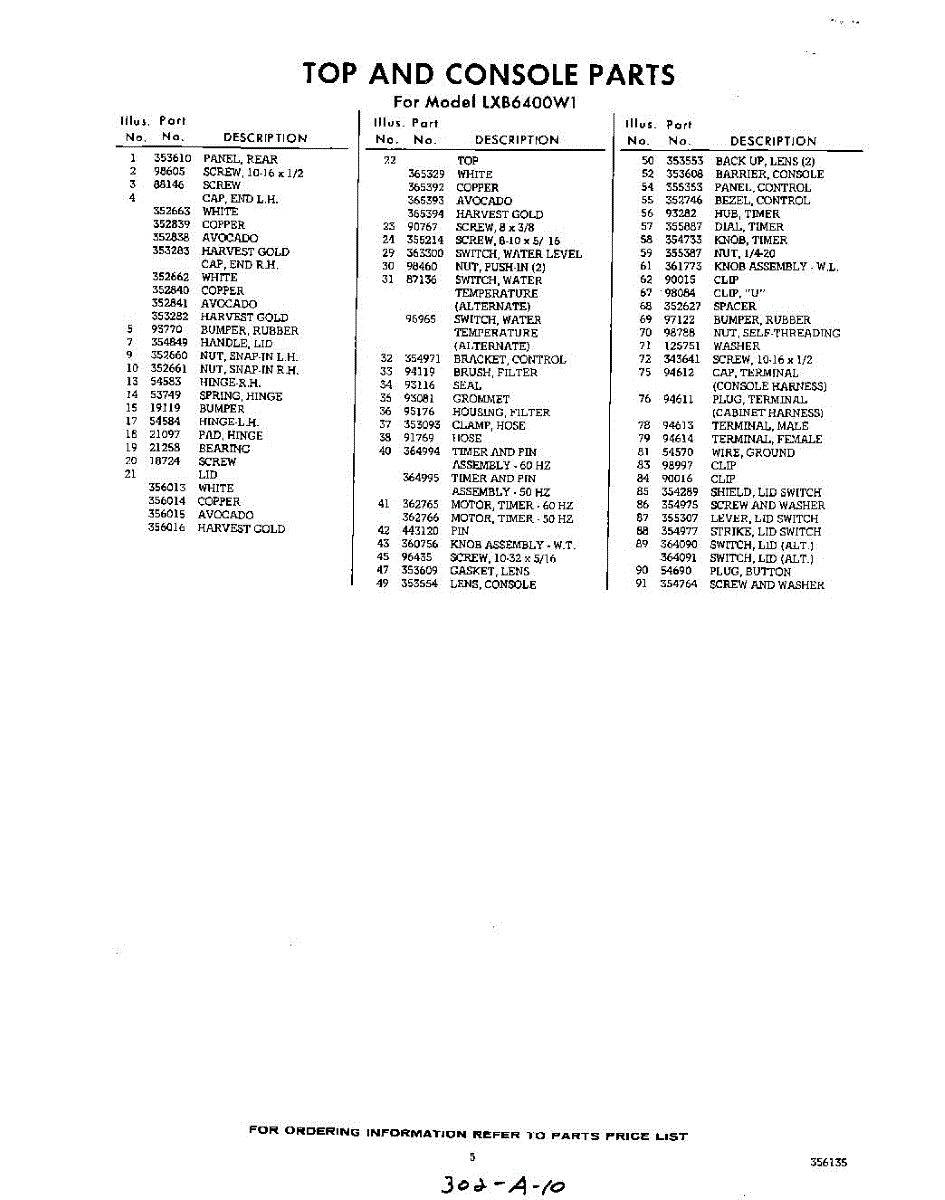 Parts for Whirlpool LXB6400W1: 05 - Section Parts