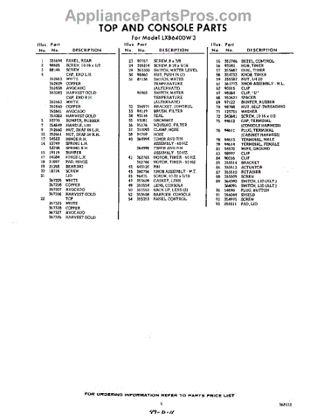 Parts for Whirlpool LXB6400W3: 05 - Section Parts