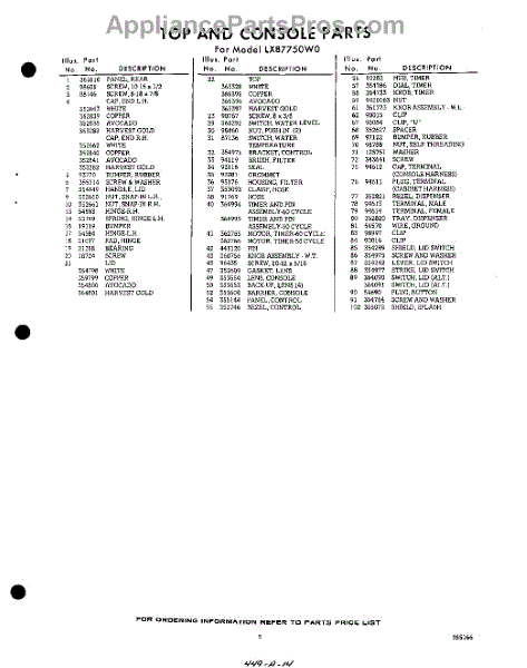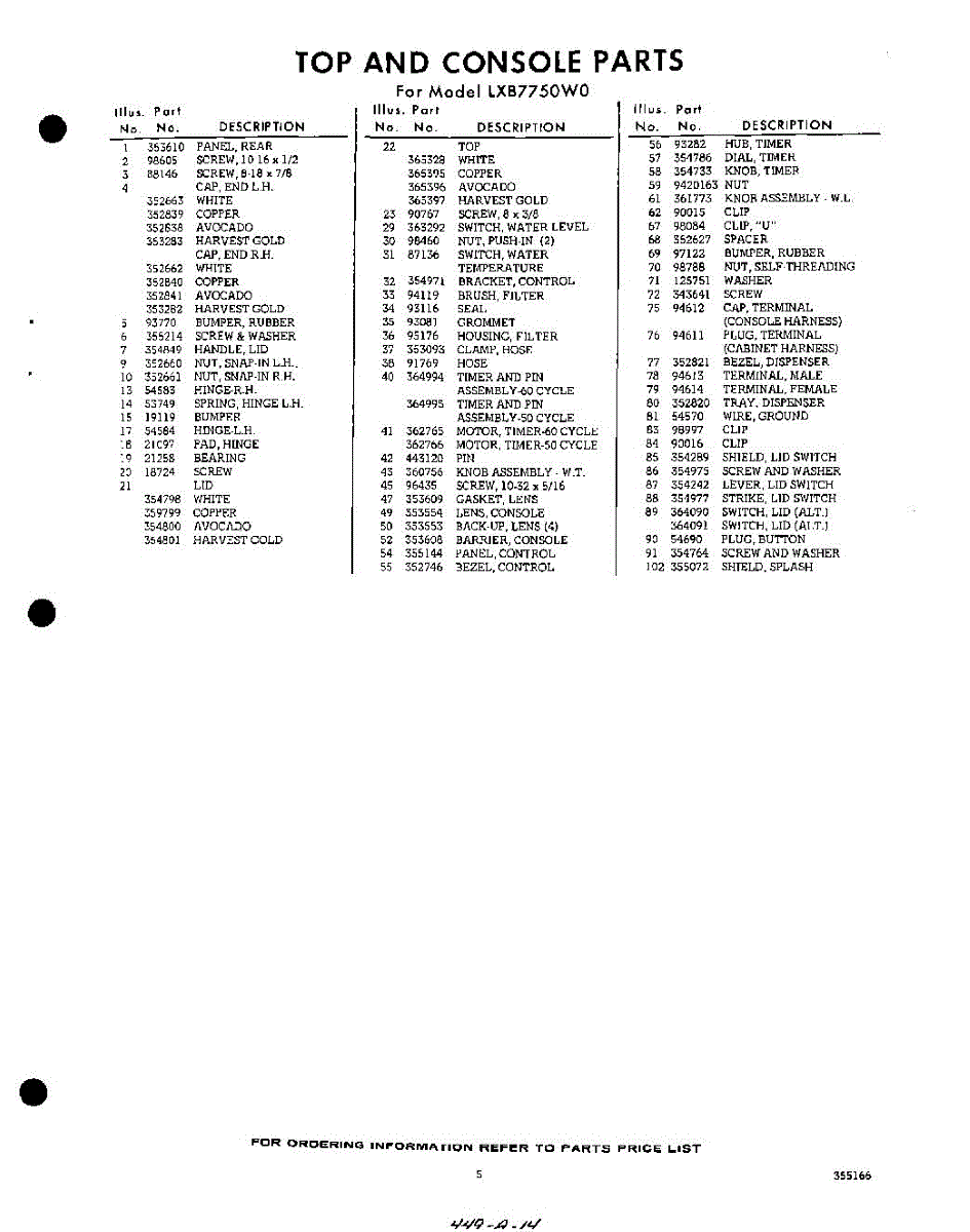 Parts for Whirlpool LXB7750W0: 05 - Section Parts