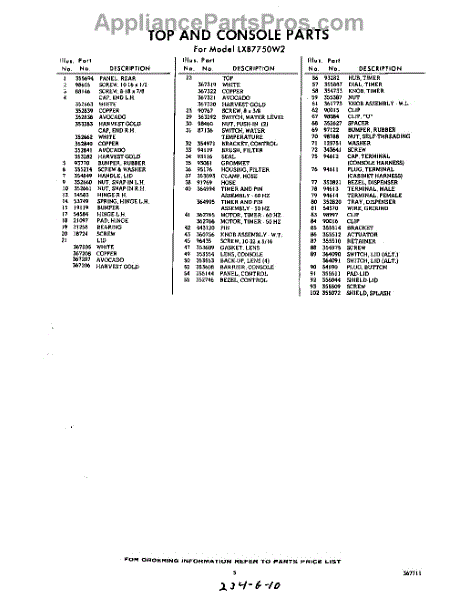 Parts for Whirlpool LXB7750W2: 05 - Section Parts
