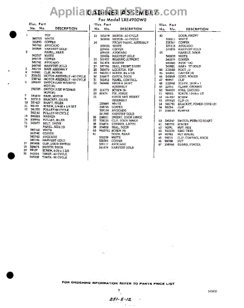 Parts for LXE4900W0